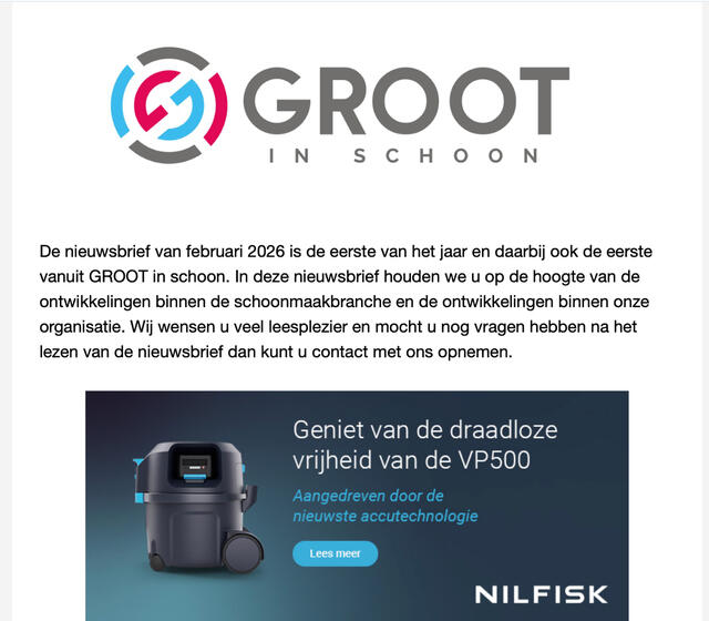 De eerste nieuwsbrief vanuit GROOT in schoon staat online voor de maand februari 2026.