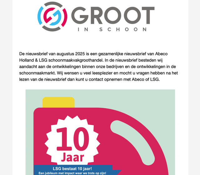 De nieuwsbrief van december 2025 is de laatste van het jaar en tevens de laatste uit naam van Abeco Holland en LSG schoonmaakvakgroothandel.